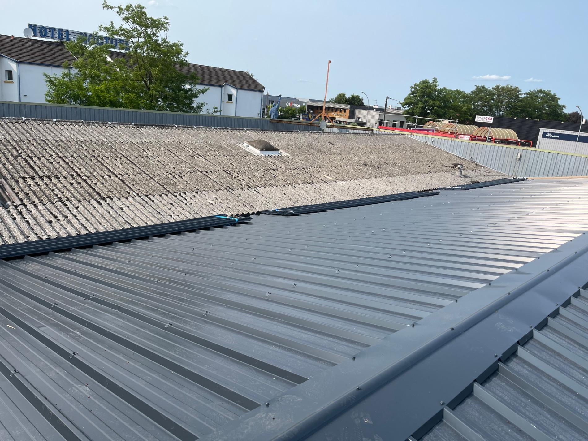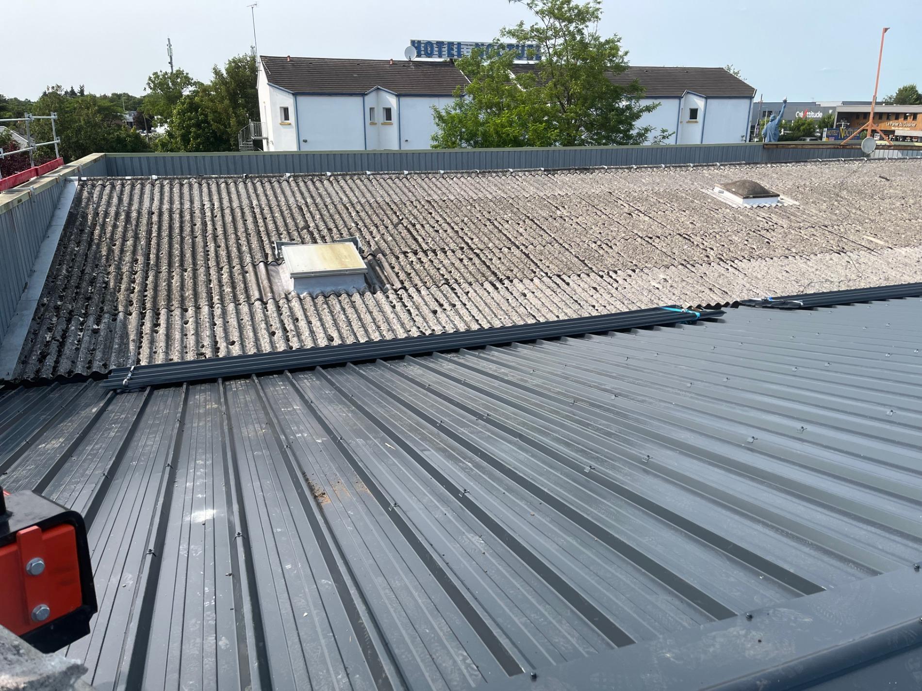 Réfection complète de couverture d'un bâtiment en tôle fibrociment par de la tôle bac acier sur la commune de ST GERVAIS